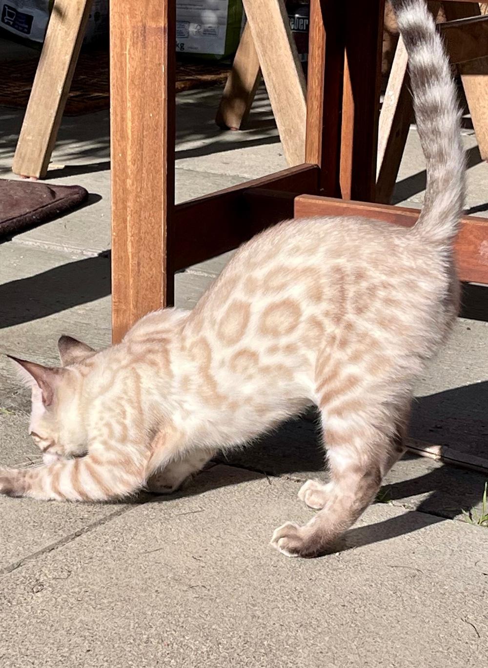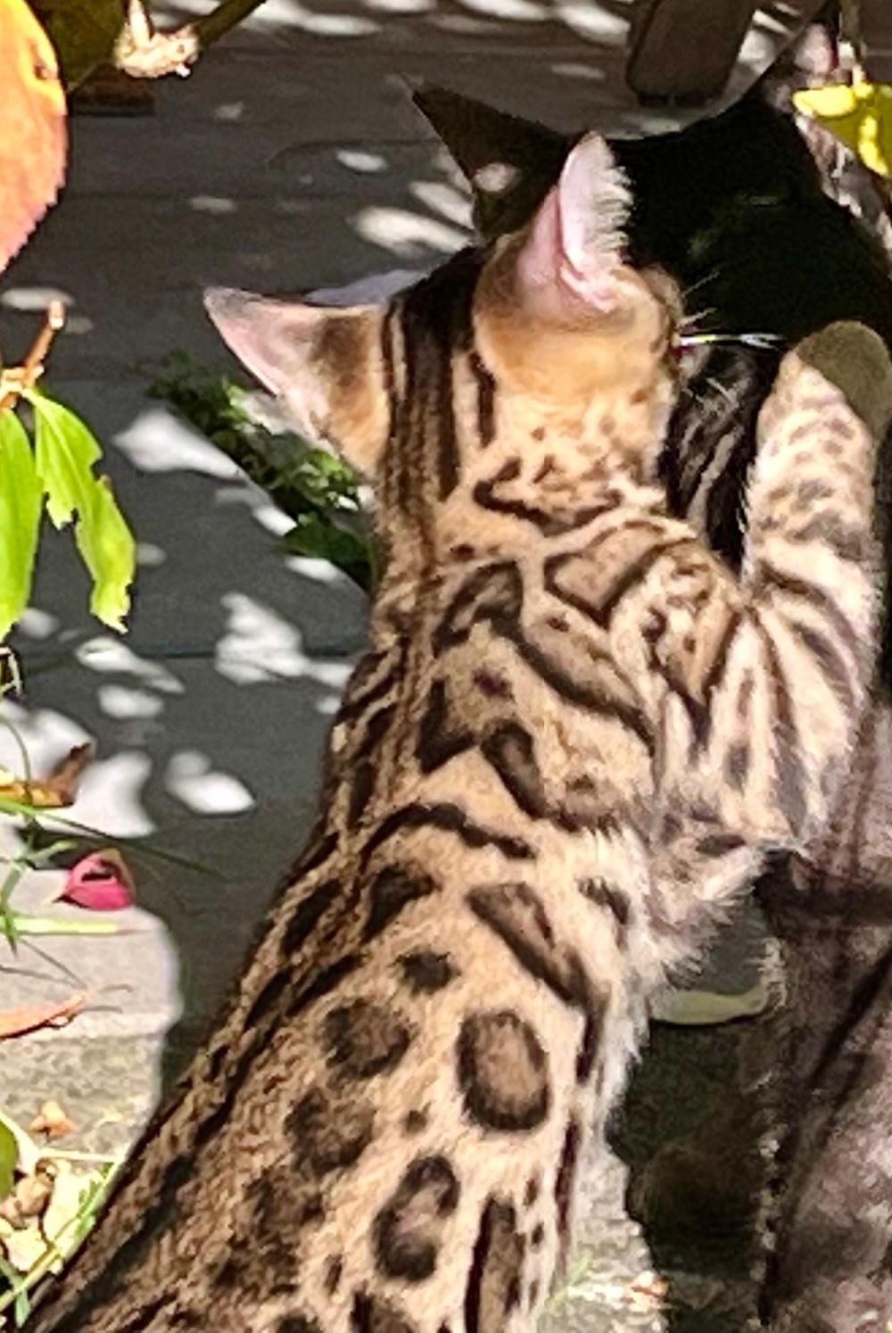 Bengalen sind sehr bewegungsorientierte, elegante Katzen, die auch kastriert kaum zunehmen, sie spielen bis ins hohe Alter. Sie brauchen Auslauf oder eine für Katzen gut eingerichtete Wohnung.