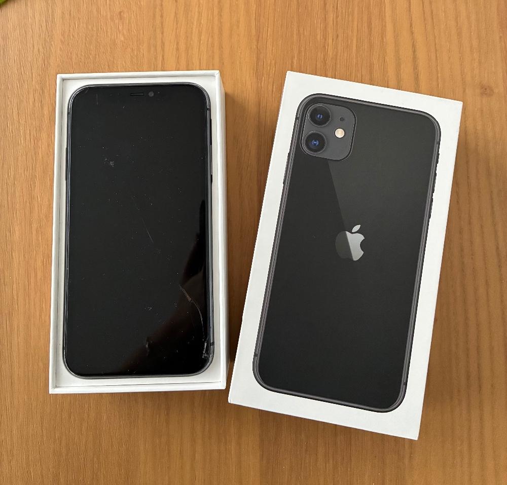 Schwarzes Iphone 11 mit vereinzelten Kratzern vorne und hinten. Alle Funktionen funktionieren aber einwandfrei.