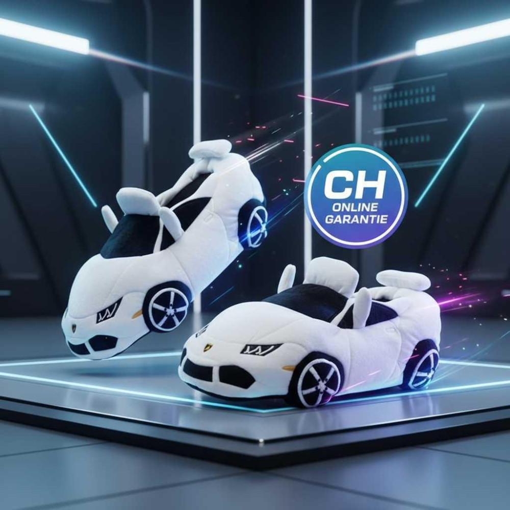 Lamborghini Plüsch Hausschuhe Auto Einheitsgrösse Weiss Geschenk