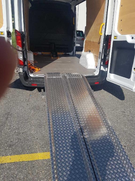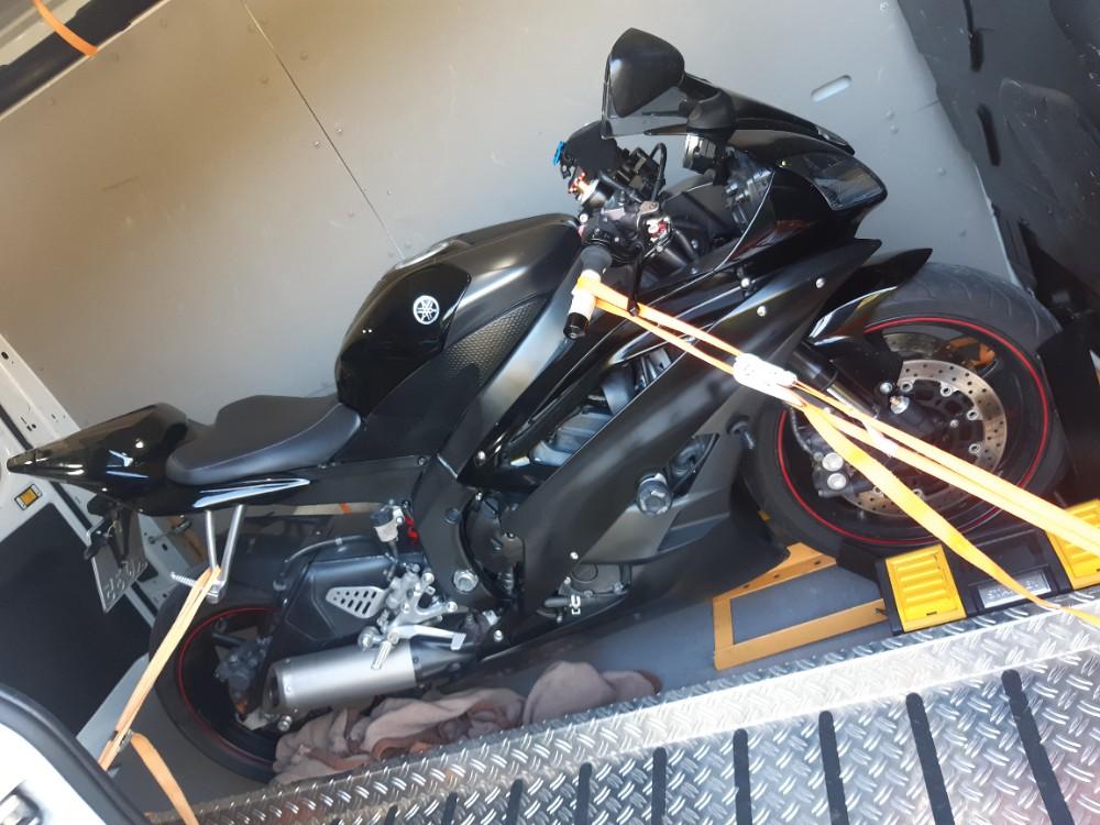 Ihr Motorrad / Fahrzeug wird professionell mit Auffahrrampe verladen und mit Halteschiene gesichert.